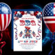 Den kallaste patriotiska hönsen, ett par solglasögon med coola patriotisk bog och som viftar ett par amerikanska flaggor under en patriotisk ballongbåge i rött, vitt och blått är grunden för denna "4:e juli" "BBQ"-firande.