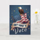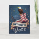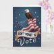 A bold, vintage-inspired patriotic illustration featuring a majestic bald eagle perched proudly atop a flowing American flag. Set against a deep navy background sprinkled with golden stars for a timeless Americana feel. A classic banner across the center reads “Don’t Forget to Vote,” blending civic pride with traditional poster-style charm.