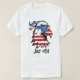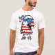 Den här bilden har ett stiliserat örn-huvud, som innehåller inslag från det amerikanska flagga. Ögonen bär solglasögon med en stjärna och rand mönster, och dess fjädrar framställs med röda och vita ränder. Ett blått band med vita stjärnor är synligt på huvudet. Under örnen skrivs texten "JULY 4TH" i ett tryckt svart teckensnitt.