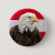 En underbar bild av ett örn som står framför en amerikansk Flagga.