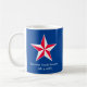 Anpassa det patriotiska kaffet mugg med din familj namn och återföreningsdatum. En stor röd och vit stjärna står ut mot en rik blå bakgrund med det första linjerna i självständighetsförklaringen tryckt i vitt. En minnesgåva från perfekten till alla dem som närvarar vid er församling.
