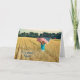 Ung flicka som springer i ett vete-fält med amerikansk flagga. Kort kan användas för födelsedag, veterandag eller andra patriotiska händelser.