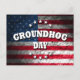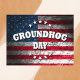 Fira Groundhog Day med ett djärvt och patriotiskt vykort med den amerikanska flagga bakgrund och pulserande text. Den här designen fångar helgdag anda med stars och stripes, skapar den som en perfekt eller gåva till Groundhog Day-entusiaster. festliga vibbar med det här unika kortet!