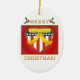 En vacker dubbla vid sidan av, USA: s patriotiska hjärta, med gult av keramiskt prydnadsämne av ribbon oval. Den här prydnaden har ett patriotiskt hjärta, den är färgad i rött vitt och blått och har en stars och stripes-design som refererar till den amerikanska Flagga. Hjärtat har också en gyllene trim, och en stor gult stöder truppbandet överst. Hjärtat ser rött ut. Ornamet läser God jul i en vacker gyllene skrift med hal och bär på toppen! Den här unika digitala teckningen visas både framtill och baktill på dekorationen. En vacker prydnad för att stödja trupperna, för vänner och familj, ett underbart tillägg till all prydnadssamling, en underbar gåva till en veteran eller någon som för närvarande tjänstgör i USA:s militär, eller en patriotisk samlare. Denna design finns även på olika former och stilar på dekorationer och andra underbara presentartiklar. Om du vill ha mer militär julklapp tog du upp stilar av prydnadsföremål, gåvor, klistermärken, märkre, kort, frimärke och mycket mer, besök vår butik!