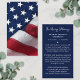 Amerikanska Flagga Memorial Funeral Prayer Card. Det här patriotiska minneskortet innehåller en amerikansk Flagga på framsidan Detta amerikanska begravningskortet utan foto är en uppskattad keepsaké, militärbegravningstjänster och veteranminnesgudstjänst eller firande i livet. I Loving Memory Military Memorial American Flagga Prayer Cards. Patriotic Sympathy Funeral Memorial Prayer Card