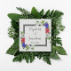 Utformningen har patriotisk röd, vit och blå panda-anemonblommor med grön eukalyptus över en grått-färgad ram.