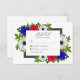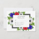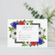Utformningen har patriotisk röd, vit och blå panda-anemonblommor med grön eukalyptus över en grått-färgad ram.