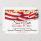 Skicka ditt meddelande "Spara datum" i personligt bröllp med en röd, vit och blå buntning gräns överst med stjärna ljus och din bröllop webbplats QR-kod på baksidan. Byt bara ut QR-koden mot din egen och anpassa texten, ta bort all text eller klicka på anpassa för att välja det typsnitt stil, storlekt och färg som du föredrar.