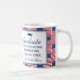 Snyggt modern patriotisk Studenten Mugg med anpassade text och foto. I bakgrunden visas Förenta staternas flagga i STARS OCH STRIPES i ett mönster i en uppdelad kö. I designen visas platshållarbilden till lämnat och ditt personliga meddelande läggs till på högerna, plus anpassade som läser TILL GOD BE GLORY. Blåa gräns med liten studenten-topparmotiv. En perfekt gåva till patriotisk studenter.