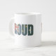En patriotisk textbaserad design med ord PROUD utförd i ett australiskt flagga grunge-teckensnitt.