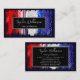 Den här eleganten och det glamorösa affärskortet har röda, vita och blå patriotiska penseldrag med sekviner och glitter mot svart bakgrund. Texten kombinerar handskript och modernt sans serif typsnitt för ett klassligt och sofistikerat utseende. Det här är perfekt för konstnärer, skönhetare, spa, mode, inredingsdesign och mycket annat.