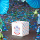 This patriotic bridal shower favor box design features a watercolor crest with a light red white and blue patriotic crest with American flags and a blue bow. The sides have a red and white stars pattern. You can personalize with your monogram and name.