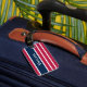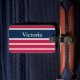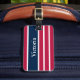 Den här patriotiska röda vita och blå stripe-bagagetaggen kan vara personlig med önskad text, t.ex. namn i vit text. På baksidan kan du lägga till förnamn och efternamn samt ett telefonnummer.