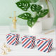 Den patriotiska utformningen inspireras av färg i den amerikanska flagga och har rött, vitt och blått rand i ett upprepande mönster.