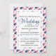 Detta är en elegant, snyggt och patriotisk AMERIKANSK WEDDING-inbjudan, som visar karta-konturen av Förenta staternas flagga i ett mönster i sidled. Skriptversen kommer från Mark 10:8. Den omvända bakgrunden är en ren AMERICAN-blå bakgrund med en subtil mönster som säger BRÖLLOP. Anpassa informationen på framsidan. Ett idealiskt sätt att fira din tro och din flagga före din Speciella dag. Del av USA Collection by Berean Designings.