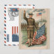 Patriotic Soldier Holding US Flag Postcard Helg Vykort