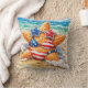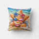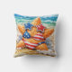 A whimsical starfish in a red, white, and blue American flag bikini lounges on a sandy beach, sporting star-shaped sunglasses that enhance its playful look