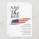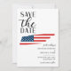 Patriotic Tennessee-destinationsbröllop sparar datumet med en amerikansk illustration och flagga.