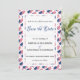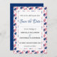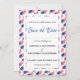 Elegant, modernt och mycket snyggt sätt att göra ett av era viktigaste tillkännagivanden. Denna SPARA DATUM-inbjudan visar karta konturen av flagga i Förenta staterna i ett mönster i flera led. Skriptversen kommer från Mark 10:8. Baksidan är en vanlig AMERICAN-blå bakgrund med en subtil mönster som säger SPARA DATUM. Anpassa informationen på framsidan. Ett idealiskt sätt att fira din tro och din flagga före din Speciella dag. Del av USA Collection by Berean Designings.