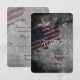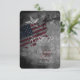 Den här designen har United Stater med en patriotisk Flagga. Det finns också dekorativa stjärnor och en grått- och svart grym bakgrund. Detta Bröllop OSA är perfekt för patriotisk, militär och 4:e juli-Bröllop i skuggor av rött, vitt, blått, Grått och svart.