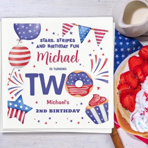 Fira din lilla milstolpe med vår "patriotiska 4:e juli, pojkens andra födelsedag!" Perfekt för ett festligt och minnesvärt firande, denna inbjudan anger tonen för en daglig fullt av roligt och patriotism. Få din dag och gör ditt barns andra födelsedag till en stjärnig affär! 🎈 🎉 🎂