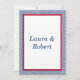 Denna bröllopinbjudan har en gräns för klassikersparrerand i blått och vit. Blåtttext är bifogad i en röd gräns. Denna är inbjudan som också skulle, fungerar för 4th av Juli bröllop. Skräddarsy och personifiera texten på båda sidor, innan du beställer.
