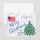 Skicka patriotiska julgranar önskemål med de röda, vita och blå julvykorten med coolan träd, USA flagga och personlig. Designad på en lätt grått-marmor som visar God jul i ett fet och fantasifullt, blått handskrivet teckensnitt mellan Julgran och flagga, är dessa patriotiska vykort lätta att personalisera. Alla textmallar, fram och tillbaka, kan anpassas så att du kan skapa ditt eget vykort för helgdag precis som du vill. Från Välsigna dig Amerika på framsidan till de röda, vita och blå stjärnorna och prydnadsföremål på den traditionella grönten träd kommer dessa patriotiska julkort att sprida pridet i Förenta staterna tillsammans med patriotisk juljubilj.