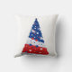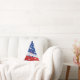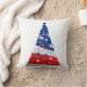 En coola, en juldekorativ kudde, med ett rött, en vit och en blått, patriotisk julgran, på båda sidor av kudde.