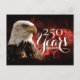 Skicka patriotiska hälsningar med detta personliga vykort med en majestätisk vitörnhök på en livfull röd bakgrund som firar Amerikas 250-årsjubileum. Lägg till ditt namn eller ditt eget meddelande för en minnesvärd, festlig souvenir.