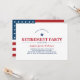 Amerikanska flaggan med stjärnor och ränder pryder baksidan, med anpassningsbar röd och blå text på framsidan. Ändra texten för att göra det till en födelsedagsfest eller välkomstfest.