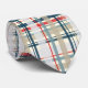 Denna stiliga tie presenterar plädmönster i patriotiska färger och brytningar.