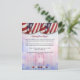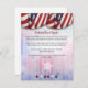 Denna bröllopsdesign har röd, vit och blå bunting längs toppen och matchande färgstjärnor längs botten med matchande färgbakgrund på framsidan. Anpassa designen med din bröllopsinformation i mallfälten eller ta bort segment.