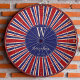 Nött patriotiskt solstrålningspilskiva i nyanser av rött, varmt vitt och blått, kan anpassas med monogram, namn och etableringsdatum.