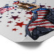 Patriotisk amerikansk sjöjungfru klädd i stars och stripes och i Förenta staternas flagga.