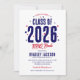 Bjud in dina gäster till en trädgårds-BBQ-examensfest med dessa charmiga inbjudningar. Med en patriotisk röd och blå stjärndesign sticker titeln "Klass 2026" ut djärvt, vilket gör det tydligt att denna fest är till ära för den utexaminerade klassen. Och med en anpassningsbar textmall kan du enkelt lägga till din egen personliga touch, vilket gör varje inbjudan unik och speciell.