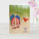 Flagga- och stjärnsolglasögon på stranden med cocktail.