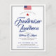 Ett klassiskt och minimalistiskt inbjudningskort anpassat för en patriotisk amerikansk evenemang eller fest. Det har en amerikansk flagga mot toppen som kan ersättas med din egen företagslogotyp. Under detta, centrerat på kortet är din information listad i en formell stils text.