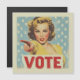 En återformaterad poster med en glamorös kvinna med blondinskt hår och fet röd läppstift, som påminner om 1950-talets uppstickskonst. Hon pekar direkt på tittaren i en attityd som liknar den ikoniska "farbror Sam Wants You"-rekryteringen poster. Bakom henne finns en stjärnblå bakgrund, och ord "OMRÖSTNINGEN" visas på en framträdande plats i stort, fetstilt rött brev vid grund. Den övergripande utformningen framkallar en känsla av patriotisk brådska och uppmuntrar till medborgardeltagande.