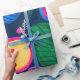 Esta obra, titulada 'Midnight Petals', es el corazón de mi exploración maximalista. Fue pintada enteramente a mano, utilizando marcadores de alta pigmentación y técnicas mixtas para lograr un contraste eléctrico que solo el trabajo artesanal puede ofrecer. La pieza representa la vida vibrante que ocurre en un jardín bajo la luz de la luna. Al utilizar un fondo azul marino profundo (Navy), cada trazo de color —desde los rosas eléctricos hasta los amarillos solares— cobra una dimensión casi tridimensional. No es solo un patrón; es una celebración de la abundancia y la energía de la naturaleza. Elegí mantener las texturas visibles del marcador para honrar el proceso creativo humano, creando una pieza que aporta carácter, profundidad y un toque de lujo rebelde a cualquier espacio o producto cotidiano.
