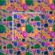 El uso del fondo Terracota no es casual; busca evocar la conexión con la tierra, la cerámica artesanal y la calidez del hogar. Las formas botánicas en rosa vibrante, amarillo y verde esmeralda resaltan sobre este tono terroso para crear un equilibrio entre la energía maximalista y la paz de la naturaleza. Es una pieza diseñada para quienes buscan rodearse de objetos con alma, que transmitan confort, optimismo y una estética artesanal sofisticada.