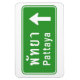 Lustigt Pattaya, Thailand Ahead tvåspråkiga thailändska motorvägsskyltar på thailändska och engelska Language Scripts. Du kan ändra storlek på och anpassa tecknet. Vår butik har ett underbart urval av T-shirts, hattar, mugg och mycket mer, allt med design inspirerade av Isaans dialect och thailändska.