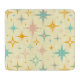 Pattern of colorful retro stars in blue, orange, and pink on a light yellow background. The vibrant, playful design evokes a nostalgic, cheerful tone.