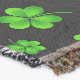 Pattern of green shamrocks on black background filt