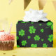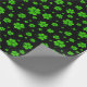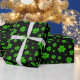 Pattern of green shamrocks on Black background symbolizing luck, harmony, and Irish spirit.