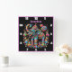 En vackert ansedd elefant står på ett dynamiskt sätt mot bakgrund av färgstarka virrvarr och mönster, och utstrålar glädje och festlighet, perfekt för ett kulturellt firande eller konstnärligt hem.