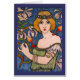 Paul Berthon - Dam med Orchids Hälsningskort