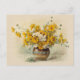 Vykort inspirerat av en vattenfärg av blommigtens konstnär Paul de Longpré, kallad Daisy och Bachelors knappar. Bild uppvisar ett runt dekorativt vas som flödar över med lycklig gult och vita blommor. Använda för födelsedagar och annat firande, eller när du vill sprida solsken! :