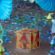 Den röda ballongen målades av konstnären Paul Klee 1922 och visade färgfulla geometriska former som flyter på arbetsytan, med en röd ballong och stadsformer i bakgrunden.