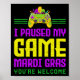 Pausat mitt spel för Mardi Gras Video Game Control Poster