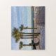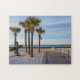 Ett pussel med en vy som tittar ner den ljusgavande gångvägen vid inloppet till Pensacola Beach, Florida, Förenade Stater på en tyst tidigt morgon med några handflatan träd och en surfarstaty. Tittar du fler utskrifter eller produkter? Besök gärna min butik: http://www.zazzle.com/timelessmomentsphtgy Det här fotot togs av Jennifer White med Timless Moments Photography. Alla bilder är upphovsrättsskyddade © Timless Moments Photography.